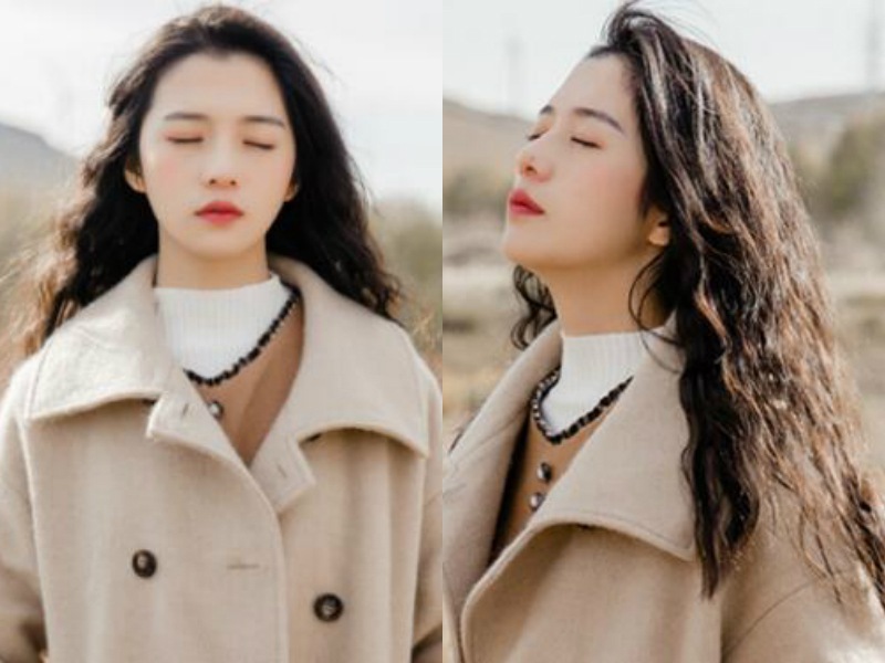 长发弄成小卷,一卷卷的很有弹性披散在肩上,凌乱中充满活力,也很有层次感,中分的刘海修饰脸型也显得更有气质,让妹子的脸变成瓜子脸非常显瘦,优雅而知性。