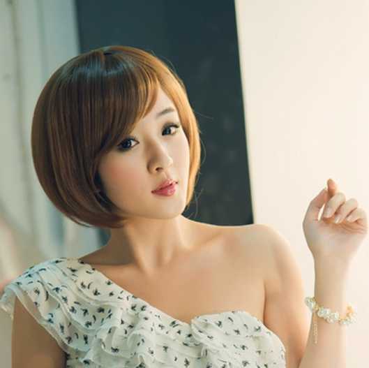 柔顺的头发,看起来好舒服,还柔和了脸部线条,亚麻色的头发,时尚甜美,斜刘海也添了几分甜美,稍向脸部内弯的发梢修饰脸型是灰常好哦。