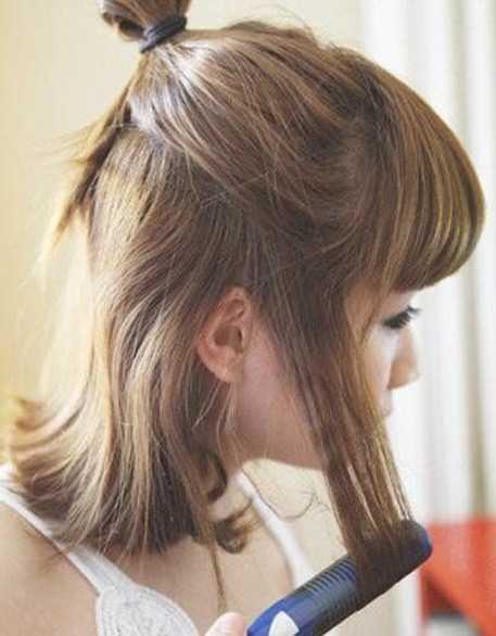 到了比较重要的一步哦,将耳朵上面的一层头发放下来,向内卷拉,如果这个步骤卷的好可以修饰脸型,很美的哦。