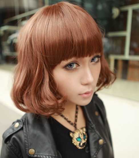 齐齐的刘海,蓬松的梨花卷,添了几分俏皮感,红棕的发色,彰显时尚气息,一个性感迷人的眼神,真的很有吸引力哦,赞。