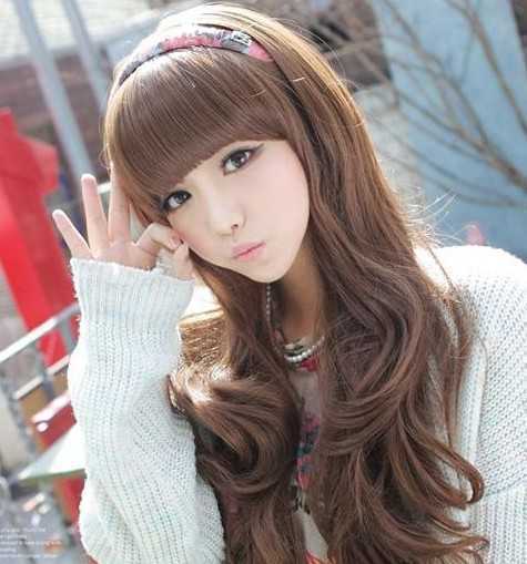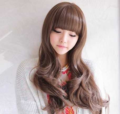 2013年最新的甜美梨花头发型,前面有弧度的刘海彰显出甜美一面,两颊长卷发尾搭在肩的两边,淑女范展现,浅亚麻棕的发色更是时尚,很不错的发型,你喜欢吗?
