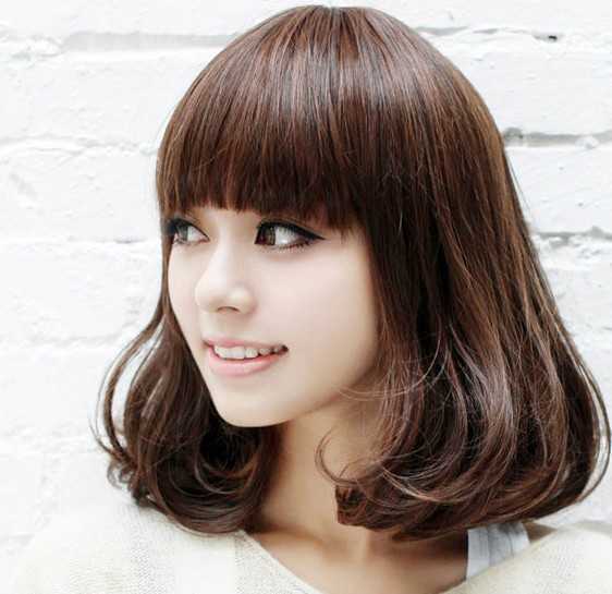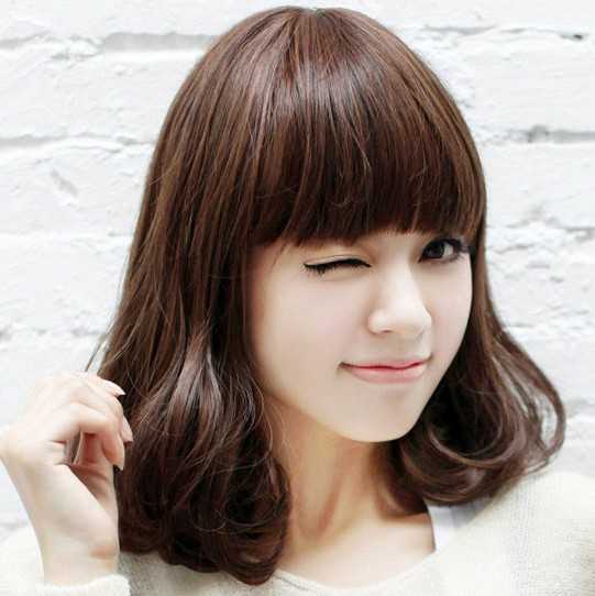 这款2013瘦脸效果最好的梨花头,前面有点碎的刘海,看起来超甜美哦!两颊蓬松感十足的内卷发尾,衬托着一张小脸,卖萌一下!很可爱!