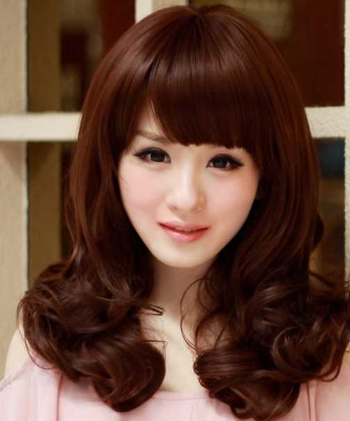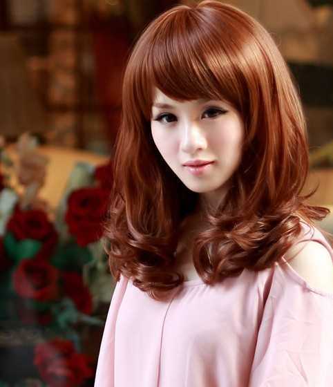 稍斜的刘海,显得很好看,两颊卷卷的发尾,能起到瘦脸的效果哦!蜜糖棕的发色更是在2013年流行起来咯!