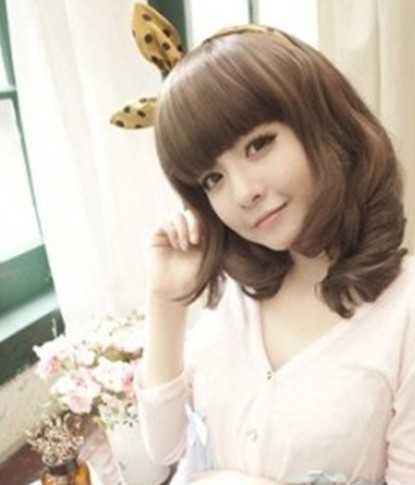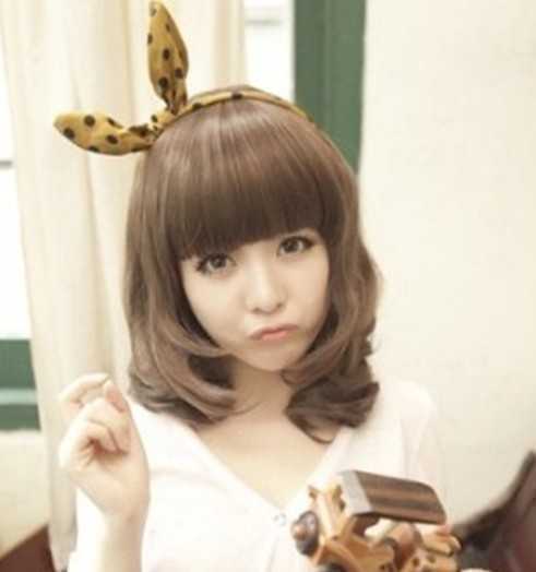 前面的齐刘海设计,带给人一种超甜美感,浅亚麻发色相当时尚,内扣发尾更是修饰脸型的最佳武器,一个卖萌表情,就显得更加可爱哦!