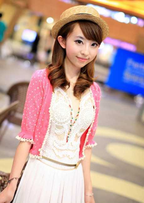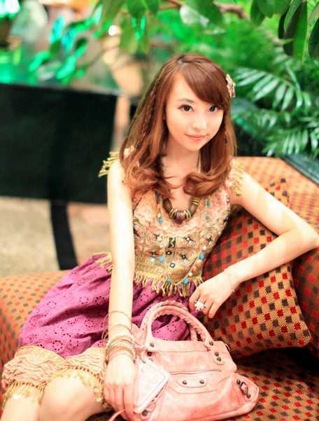 给人一种精致的感觉,diy的发辫超美哦,斜刘海,发梢处的卷发透着梨花头的特有的美,搭配着发饰更添青春甜美。