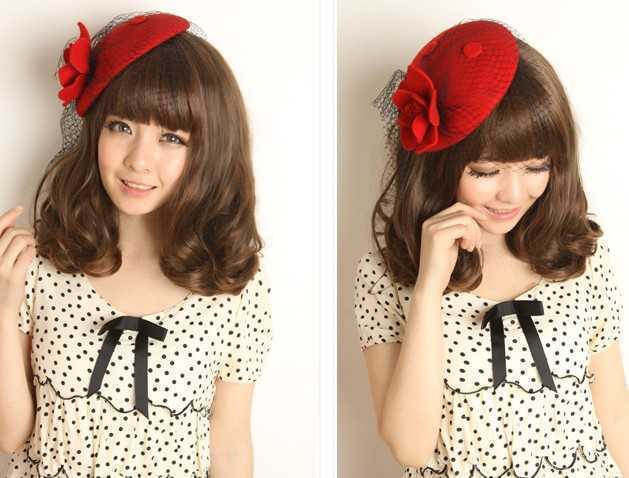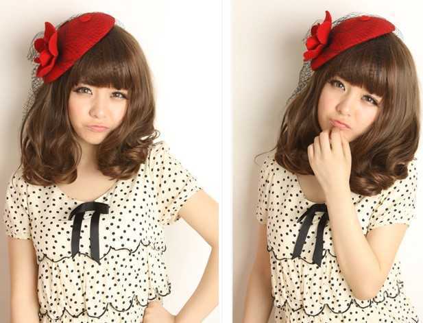 甜美女生最爱的一款梨花头,齐刘海的打造,看上去超甜美,两颊蓬松感十足的卷发尾,修脸效果最棒!