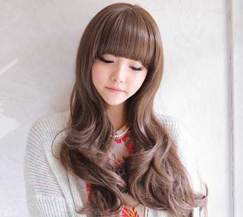 一款齐刘海的长梨花头,前面是肩齐的刘海,卷卷的发尾搭在肩上,多了一种美感,修脸又减龄呢!甜美范大增!