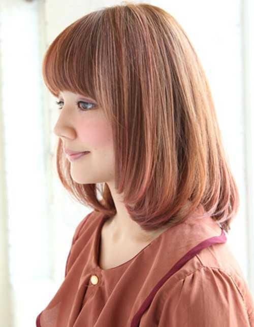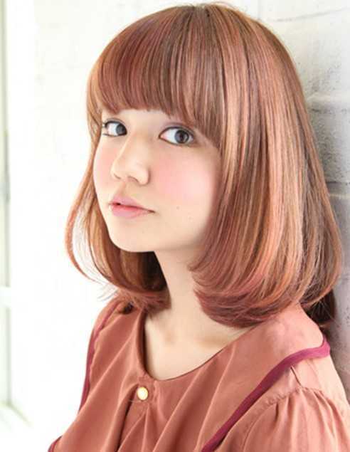 挑染的红棕发色,前面是剪齐的刘海,给人一种甜美感,内扣感的发尾,修颜又减龄,就算是一个侧脸也是很好看的!