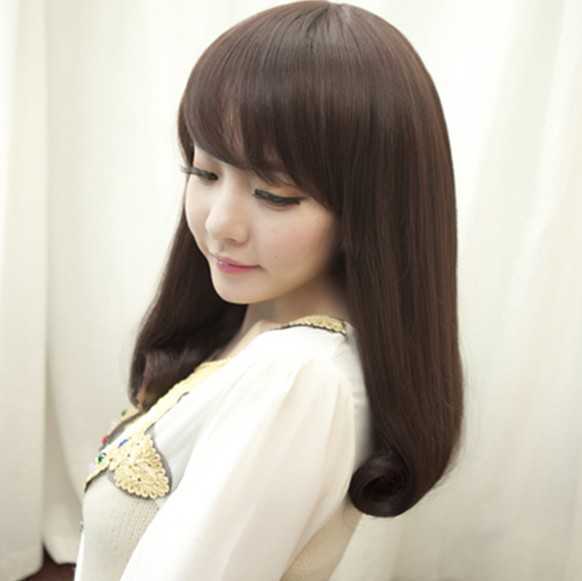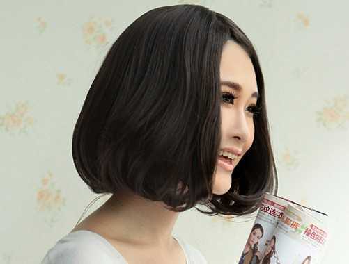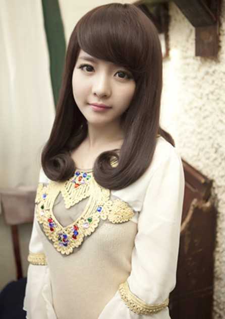 这款十分流行斜刘海内扣梨花头发型,斜开的刘海,看上去是不是很甜美呢?两颊内卷扣的发尾,很修脸,胖脸、宽脸的妹子很适合!