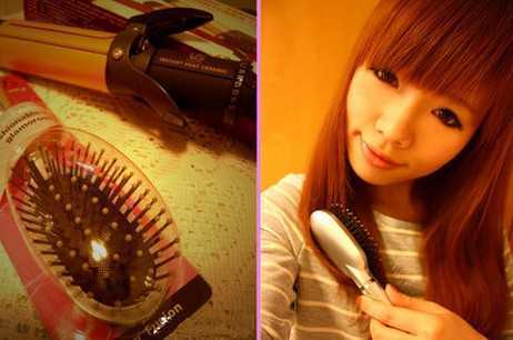 准备好打造梨花头的工具,陶瓷卷发棒,梳子,先用梳子梳理一下头发。