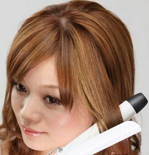 步骤一:用卷发棒将刘海和头发卷一下,使得看起来的造型更加好看。