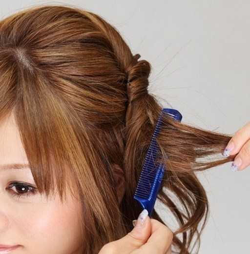 步骤四:将固定好的头发,马尾处用梳子倒梳一下,制造蓬松感。