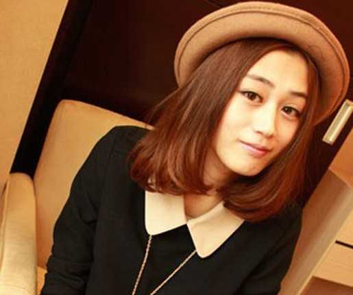 内扣卷发的齐肩梨花头发型,中分的长刘海设计,既显气质感又能修颜瘦脸,一顶复古礼帽的搭配,可是引领了潮范十足的味道呀!女生们不可错过的发型。