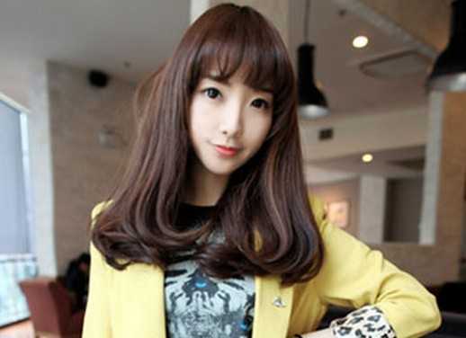 中长的梨花头发型,结合了内扣式卷发效果,轻松打造出一个自然优雅的小女生感觉,经过修剪薄碎的弧度刘海,巧妙修颜女生的长脸,栗色系的染发又是时尚最好的法宝之一。