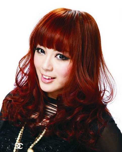 这样的一款梨花头发型可以说是2013年冬季最抢眼时尚的发型了,层次分明感的卷发似,看起来相当迷人,橘红的染发效果便成了过目不忘的时尚风格,齐刘海的加入甜美又不是问题哦!