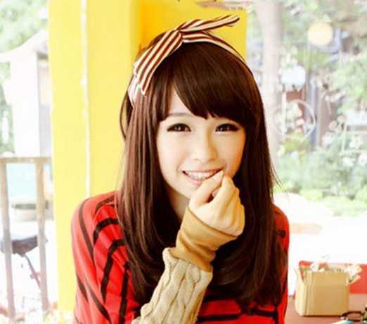 半圆弧形的刘海进行精灵可爱,内扣式的中长梨花头发型洋溢着甜美优雅气息,条纹的发箍更为2013年冬季甜美吸引眼球的完美搭配。