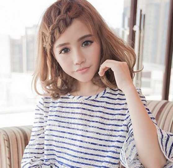 特色的麻花编发刘海,动感的卷发丝,轻松打造出一款时尚唯美的短发梨花头发型,两侧的发丝恰到好处的修饰了脸型,尽显迷人的小脸效果,整体造型透出甜美迷人气息,减龄效果也十分显著哦!