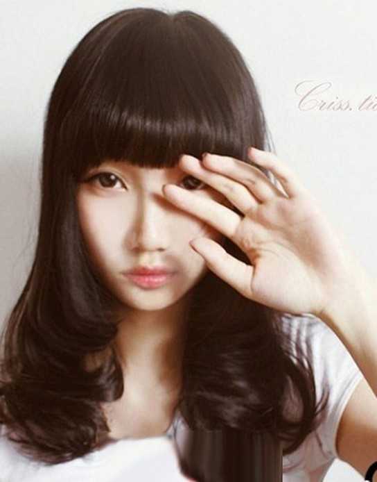 蓬松的内扣中长梨花头,透出丝毫的神秘优雅气息,加上齐刘海搭的配,又可以是十分可爱的感觉,用手遮眼的小动作,展现清纯有爱的小女生形象。