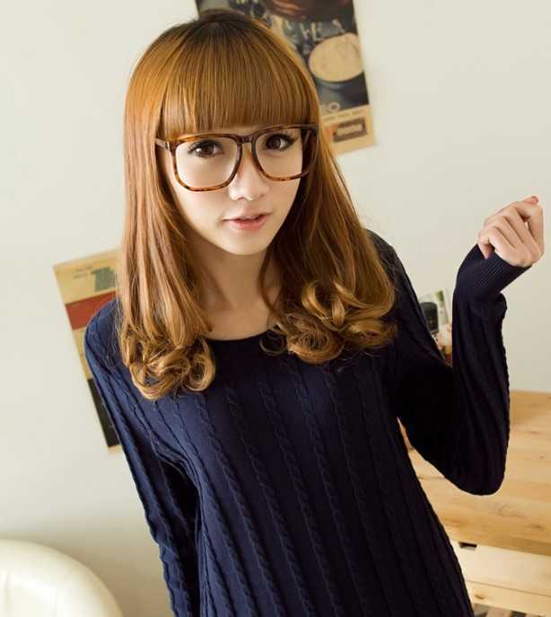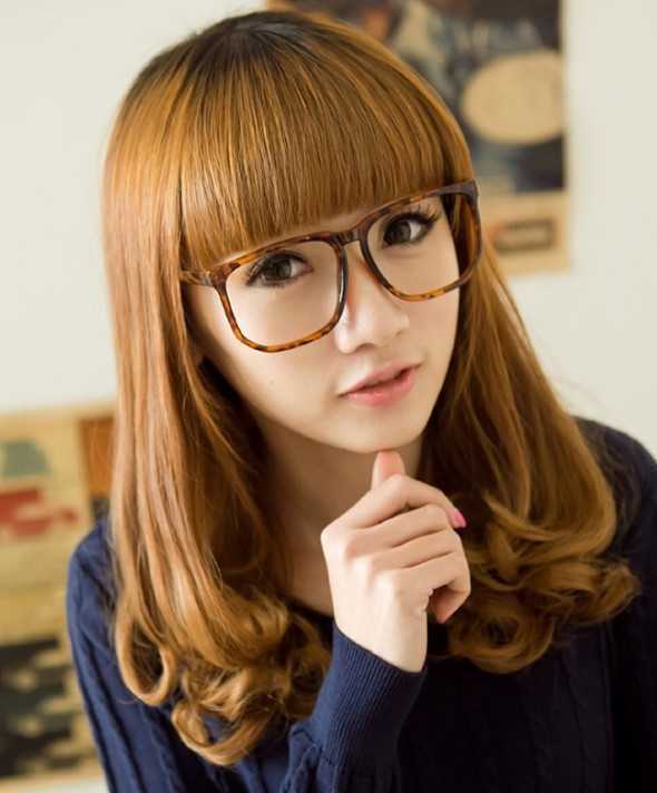 发尾处卷扣的发尾,很有瘦脸的效果哟!戴上一副眼镜,是不是很可爱呢?
