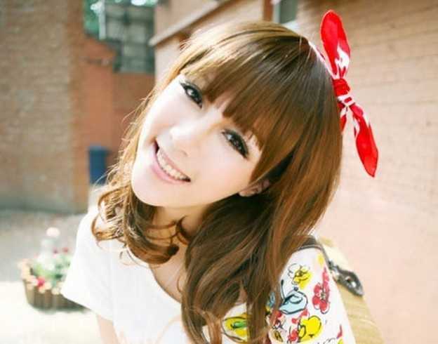 甜美可爱的女生,搭配上一款齐刘海梨花头发型,瞬间洋溢出纯真俏丽的感觉,蝴蝶发带的点缀下,无敌可爱哦!