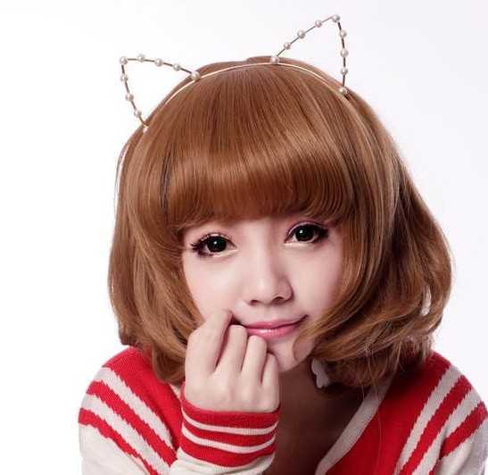 一头浅棕的染发颜色,最显肤色了,而且还十分显潮流呢!剪齐的刘海,甜美十足,内卷烫的发尾,瓜子的脸蛋呈现,在校的女学生如果喜欢的不妨试试哦!