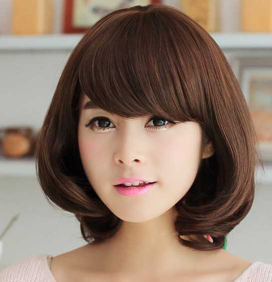 韩范十足的齐刘海短发梨花头,前面剪齐的刘海,给人的感觉就是很甜美,两颊烫过后的发尾,制造出来的蓬松感,修脸效果最佳!内扣的设计,最瘦脸,很适合女学生的一款发型。