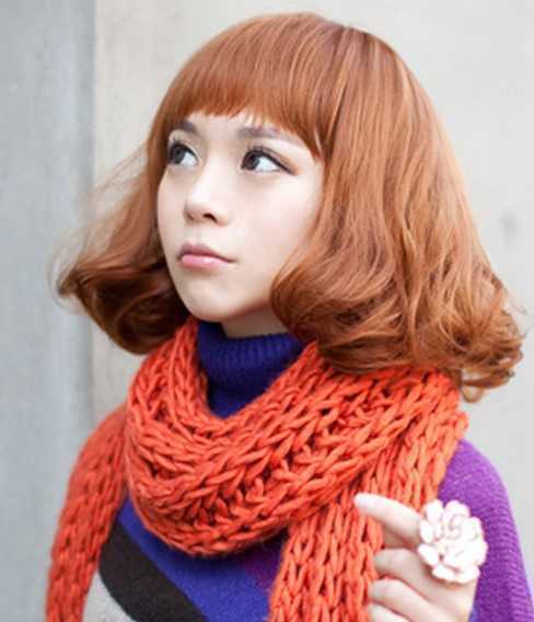 时尚的蜜糖棕染发颜色,就是充满潮流感的哦!前面剪得较短齐刘海,很显甜美,两颊蓬松的内扣处理,就是修颜的关键,在校的女学生们喜欢吗?