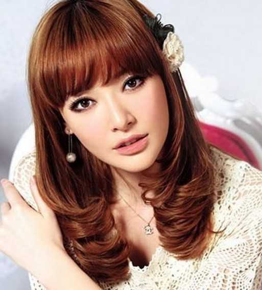 动感往内卷曲的梨花烫发,点亮了整款发型的优雅美态,微斜的齐刘海凸显精美张荣,花朵发饰的点缀下,2015年几分浪漫气质感觉。