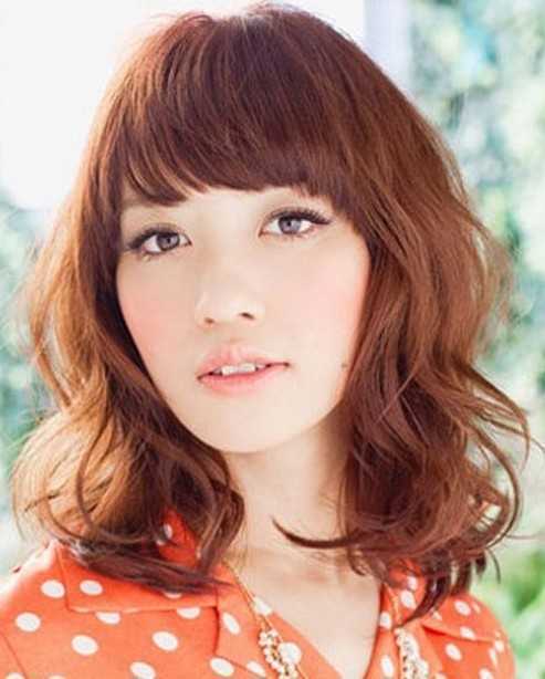 梨花烫发贴合脸部轮廓,营造出超柔美的线条感,选择棕黄色染发色和齐刘海的设计,时尚中还显露出小慵懒随性美。