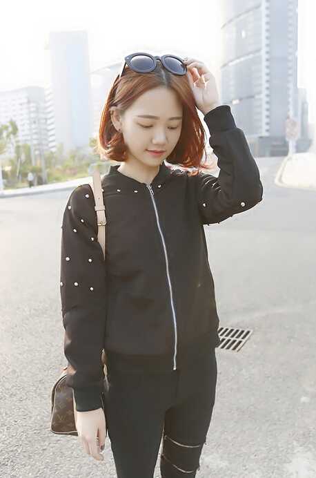中分橙金色染发发色十分显MM白皙肌肤,刚好到脸颊的发尾烫出内扣上翘的梨花头烫发,头发挽在耳际背后,内扣翘发完美修饰脸颊,搭配上时尚墨镜装饰头顶上,十分时尚萝莉范哦!