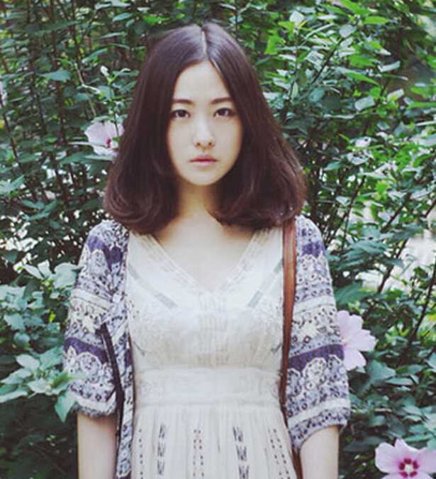 中分蓬松松散的齐肩梨花头发丝完美打造出MM精致好看的小V脸蛋,深棕色发色和好看的服装更显出文艺气息的feel。