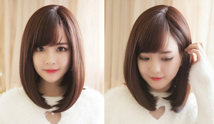 这款直发型的内扣梨花头是最淑女温柔的。柔顺飘逸的及肩长发看上去落落大方,斯文有礼,然而内扣的发尾设计则更好地衬托出精致小巧的脸型,让人心动不已。