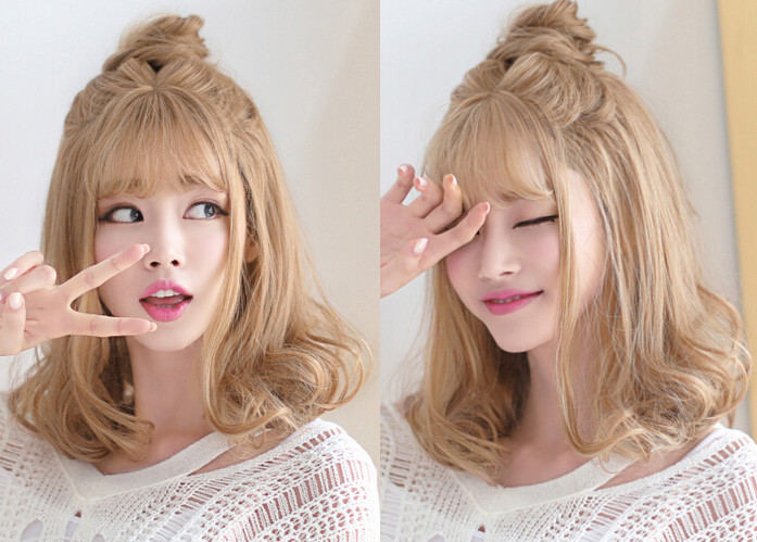 梨花头假发款01》》》》》这款亚麻色的梨花头假发十分地特别,出挑的发色引人注目,两边散落的秀发让脸型更加地好看,别致的挽上一个丸子头会更显精致好看又不失个性,轻薄无感的假发更是女生们大爱的原因!