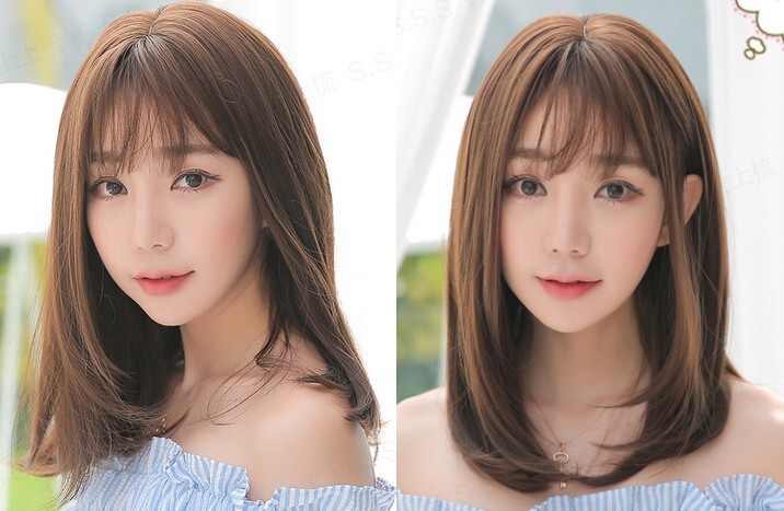 梨花头假发款02》》》》》这款巧克力色的自然梨花头假发采用了优质的仿真头发,随意分刘海都不用担心会露馅,自然舒适的佩戴效果更是无人能敌,轻薄的空气刘海清新又自然,十分地迷人浪漫。
