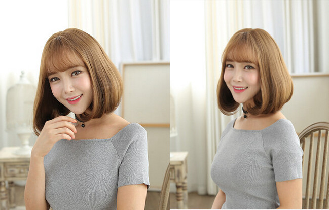 内扣梨花头01》》》》》棕黄的发色十分地靓丽有光泽,柔顺的中长发在发尾处进行了内扣的烫发设计,就完美地呈现出这款梨花头气质优雅温柔的特点,斜分的刘海还能为整体发型加分呢!