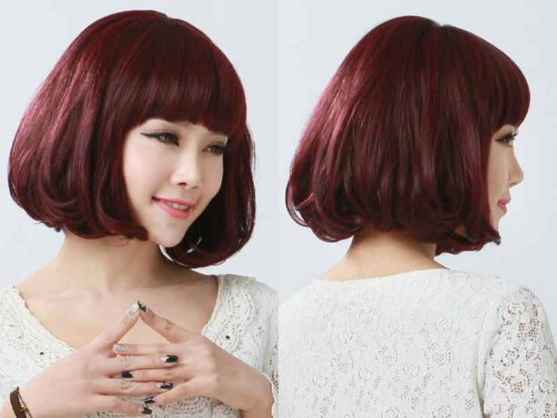 一头酒红色的齐肩梨花头风格潮流,个性张扬,走在人群中,想让人不注意你的美都难,内扣的发尾是为了修脸而生,可将大脸显小,将小脸显得更精致。