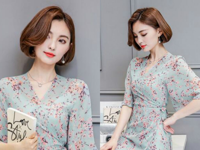 齐耳的短发一向给人乖巧可爱的感觉,但是经过梨花头内扣的设计之后则显得知性优雅。偏分的刘海垂在眼帘,弯曲的弧度与发尾的内扣相衬,凸显出女生柔美的脸部线条,红润的唇色本就显皮肤白,加上栗色的染发就衬得妹子的皮肤越发白皙了。