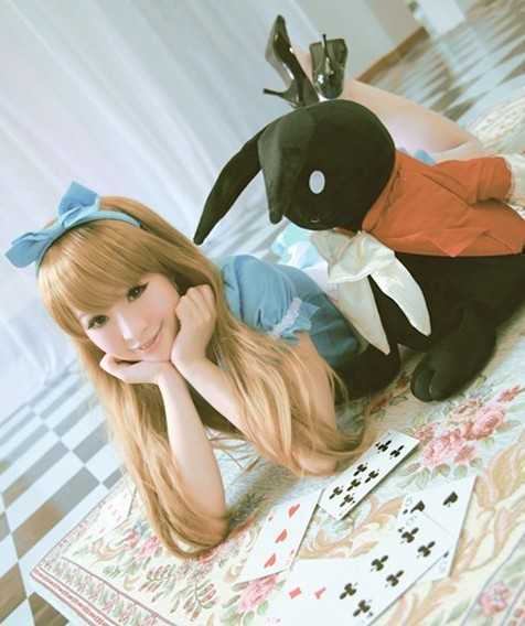 兔女郎的打扮,金黄色的齐刘海长发,时尚可爱,萌妹子系列齐刘海发型哦!