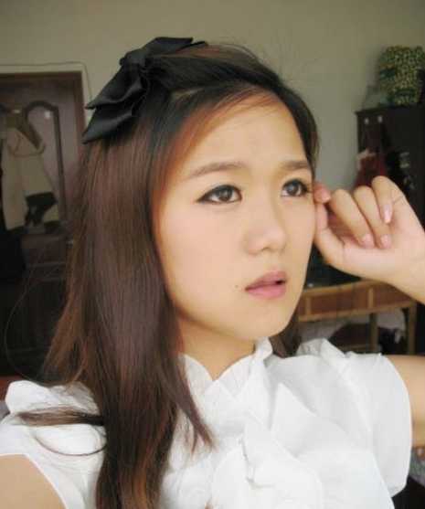 甜美又简单的流行美发型,一个黑色的发饰将刘海扎在后面,超甜美的,非常惹人怜爱哦,有点棕色的头发更添几分甜美,赞哦。