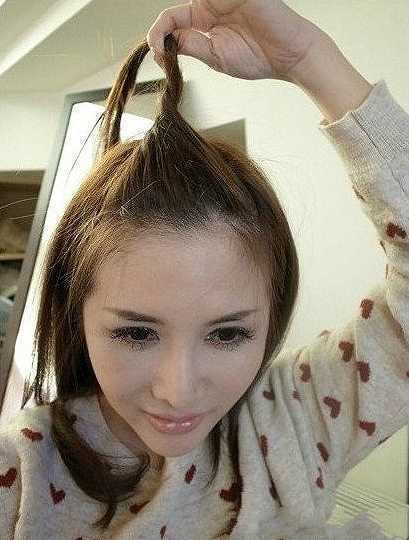 将拿起的头发用手指进行旋转,像图中的模特一样,嘻嘻,这样看起来好可爱。快好了,加油哦。
