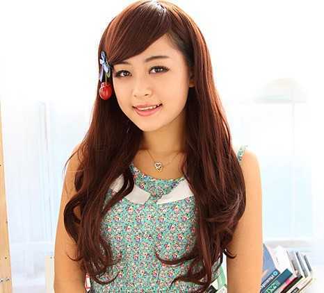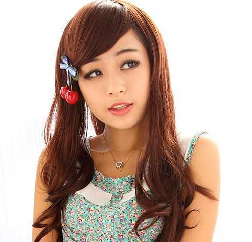超级好看的一款韩式斜刘海长卷,斜刘海设计,修饰了脸型,两颊卷卷发尾散落在肩上,感觉超美的。
