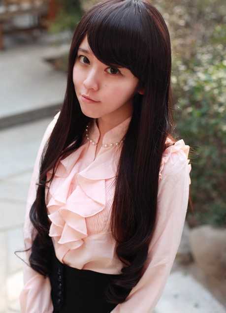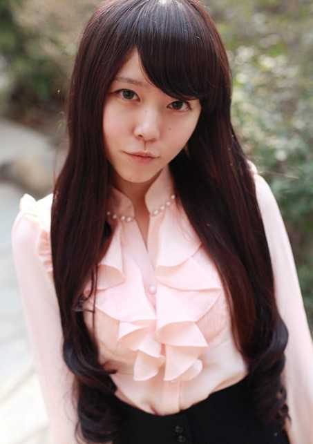 韩式刘海美图四:斜刘海清纯长卷发