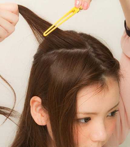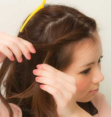 Step6:将前面的刘海分成两束头发,相互扭转在一起。