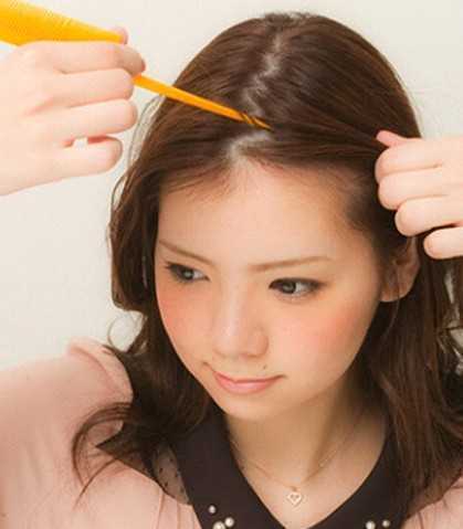Step4:用梳子的尖头出,以Z形分出中分的刘海。