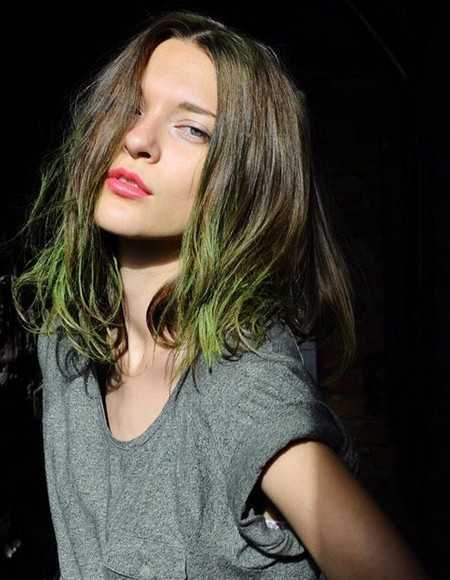 非常欧式风味的中分斜刘海发型,一点也不浮夸的渐变发色,反而为整设计效果增添几分时尚潮流感,粉红色唇彩显得更加性感动人,搭配灰色T桖,呈现出休闲舒适感觉。
