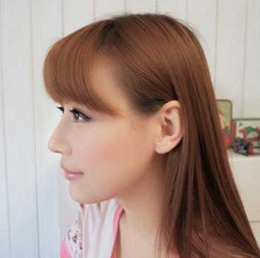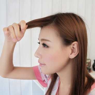 步骤一:将整个刘海掀起来,注意保持发丝整齐均匀形状为片状.