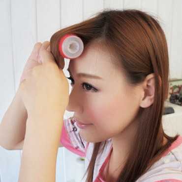 步骤六:卷好后进行护肤和化妆步骤就不用担心弄坏弄脏刘海了,画完妆后放下发卷,刘海已经有一定的弧度了。