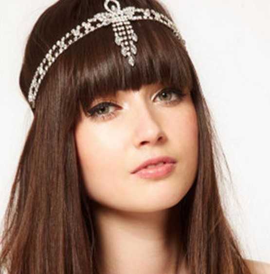 简约的长直发,结合水钻王冠的发带,就能轻松打造出一款波西米亚风格的新娘发型,长齐刘海的搭配,更是气质甜美又修颜哦!