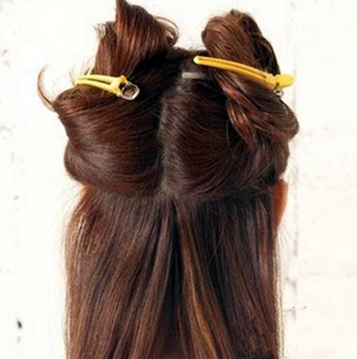 2、把头发上下左右均分为四个部分,并使用夹子固定好发束。