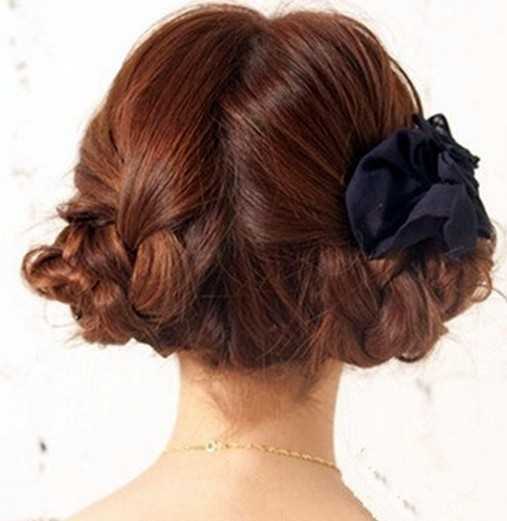 6、最后选择一款精美的发饰进行装饰!哈哈,一款甜美的齐刘海扎发就完成了,这是背面的效果图,怎样呀?喜欢的不妨动手起来吧!